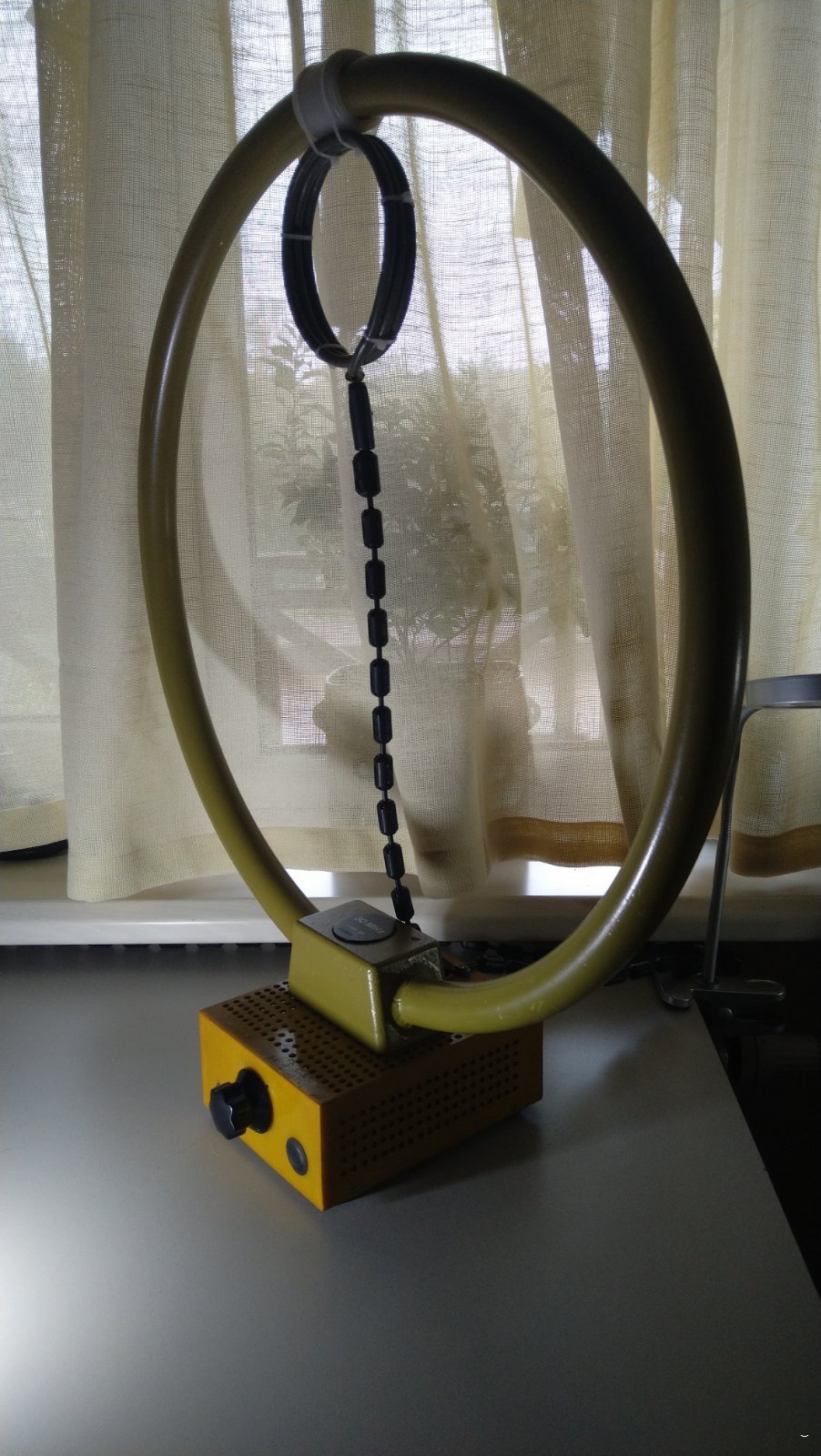 В периоды работы солнечного инвертора для электроснабжения дома для приема на участке КВ от 7,5 кГц использую внутреннюю рамочную антенну. Ее направленные свойства позволяют выбрать направление рамки, при котором наводки от электросети минимальны. На фото положение антенны в таком положении. Запись начинается с него, далее медленно поворачиваю рамку вправо на 45 градусов, возвращение, поворот влево на 45 градусов и снова возврат: