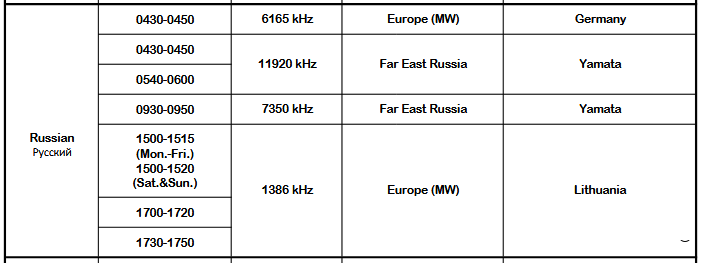 Согласно расписания радиостанции с 29 марта 2026 года передачи NHK World на частоте 1386 кГц в утренние часы отменены: